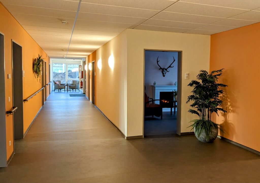 Um den Gästen und Besuchern ein Gefühl von Geborgenheit zu vermitteln, wurde das Haus mit natürlichen Materialien und warmen Farben gestaltet.
